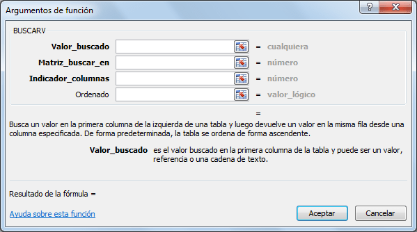 Valor_buscado (obligatorio): Este es el valor que se va a buscar en la primera columna de la tabla. Podemos colocar el texto encerrado en comillas o podemos colocar la referencia a una celda que contenga el valor buscado. Excel no hará diferencia entre mayúsculas y minúsculas.